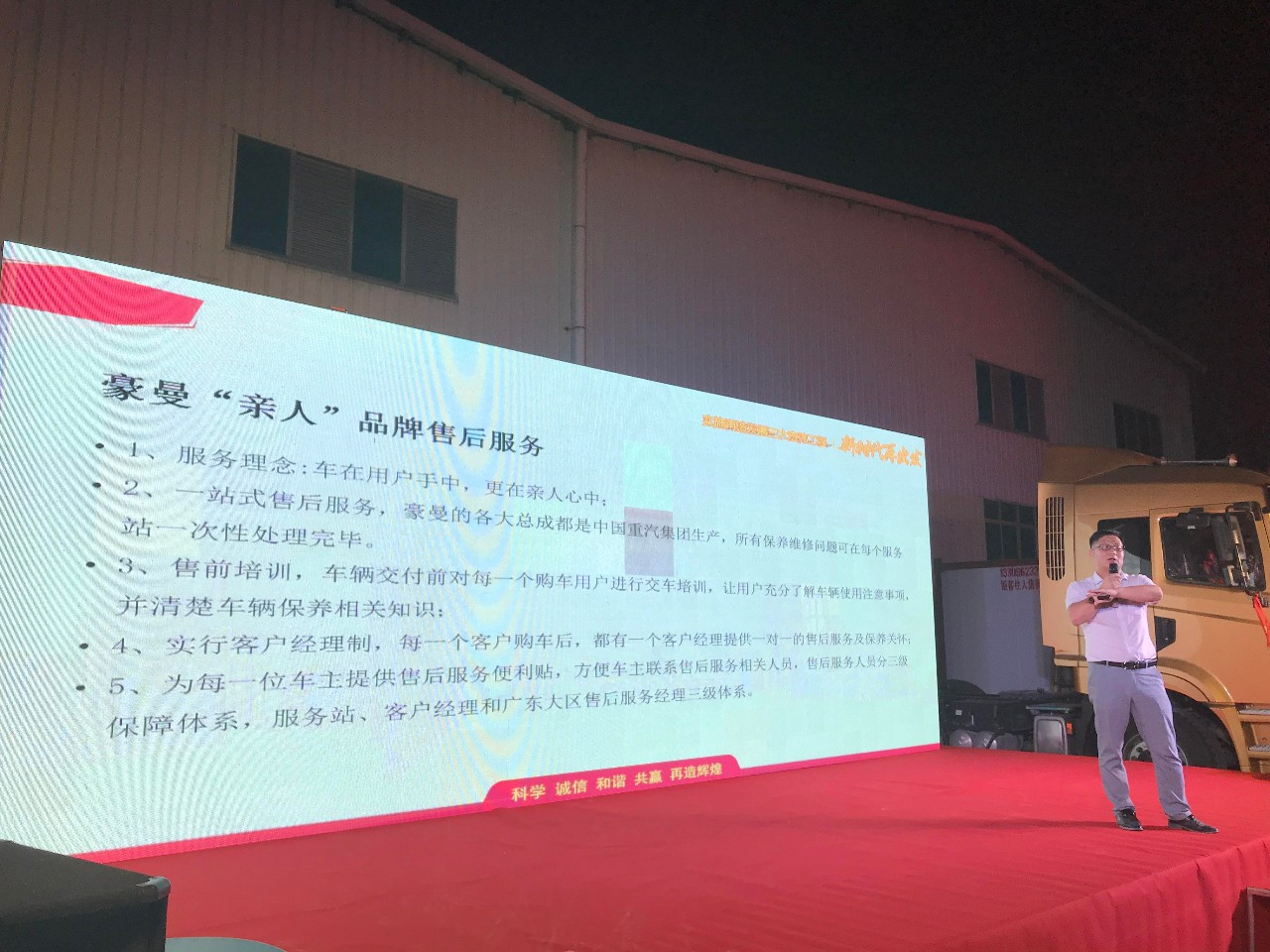 ▲中國重汽集團福建海西汽車有限公司石經(jīng)理致辭及宣讀豪曼產(chǎn)品特點
