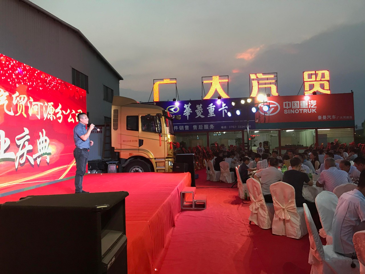 5月23日, “廣大汽貿(mào)河源分公司,開業(yè)慶典”百余位客戶及合作伙伴共同見證了這場盛會。安徽華菱星馬集團有限公司總經(jīng)理助理葛總;安徽華菱星馬集團有限公司供應部李部長;中國重汽集團福建海西汽車有限公司粵東大區(qū)石經(jīng)理;鑫榮達掛車有限公司總經(jīng)理韓歡先生;廣大汽貿(mào)總經(jīng)理杜文遠先生;廣大汽貿(mào)副總經(jīng)理杜旭春先生;廣大汽貿(mào)副總經(jīng)理周志昂先生;廣大汽貿(mào)河源分公司總經(jīng)理韓華龍先生盛邀出席本次開業(yè)儀式!
